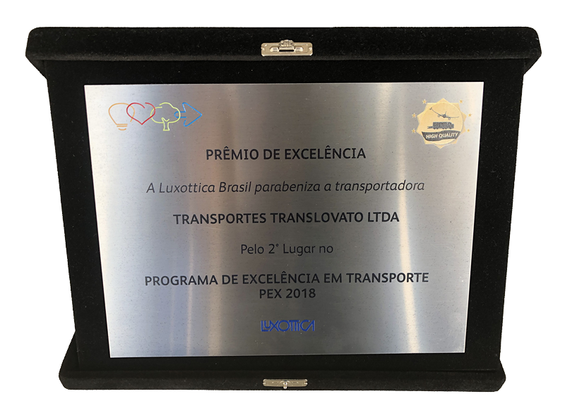 A Translovato recebeu do cliente Luxottica o Prêmio de Excelência através do PEX (Programa de Excelência).