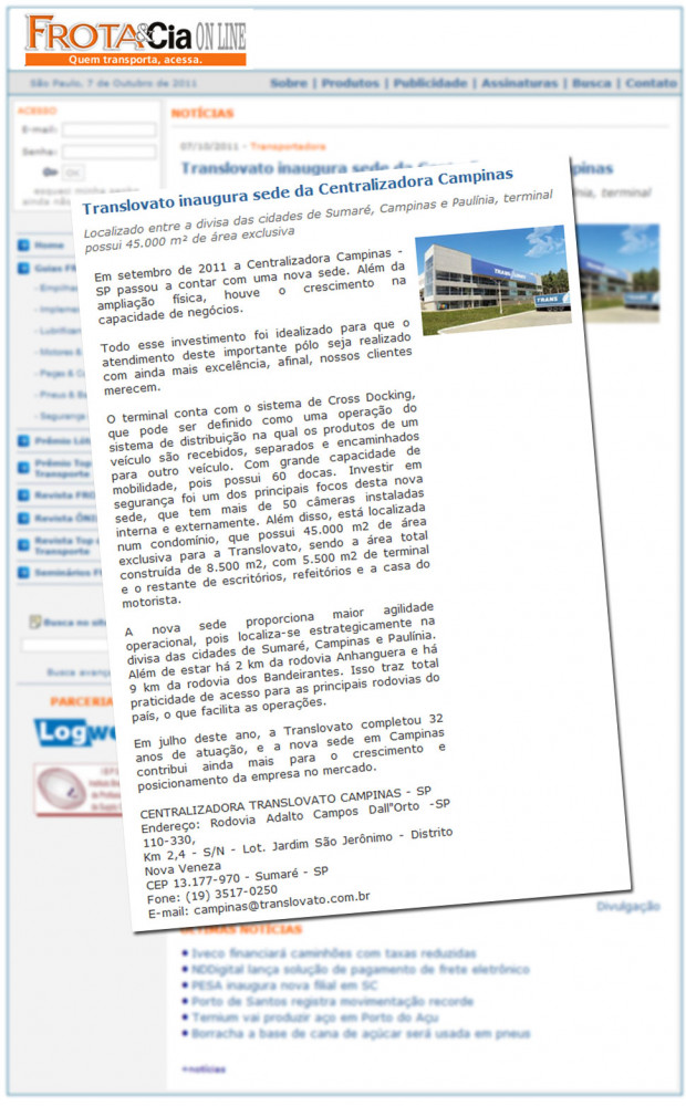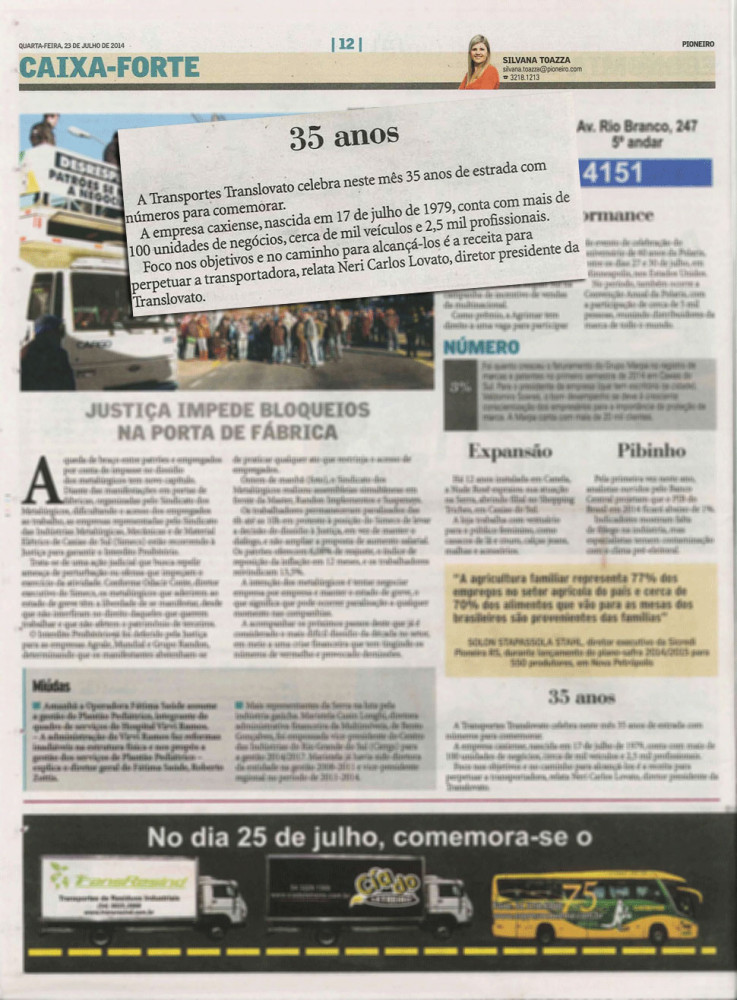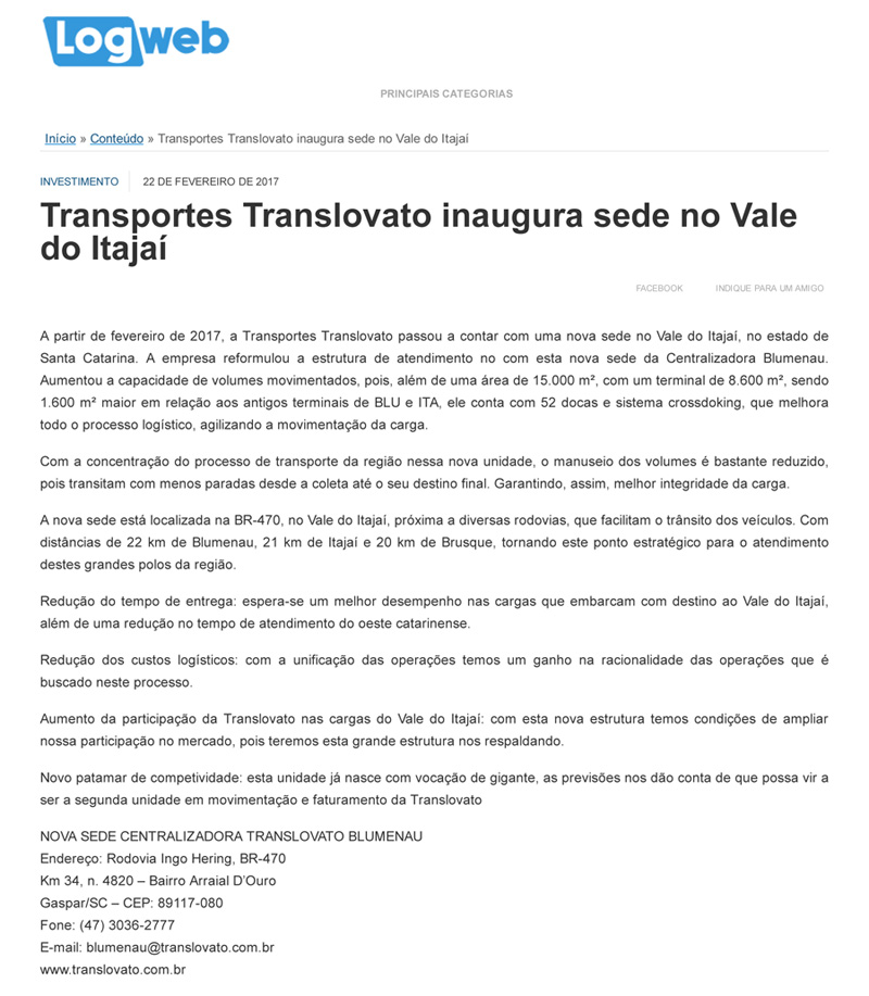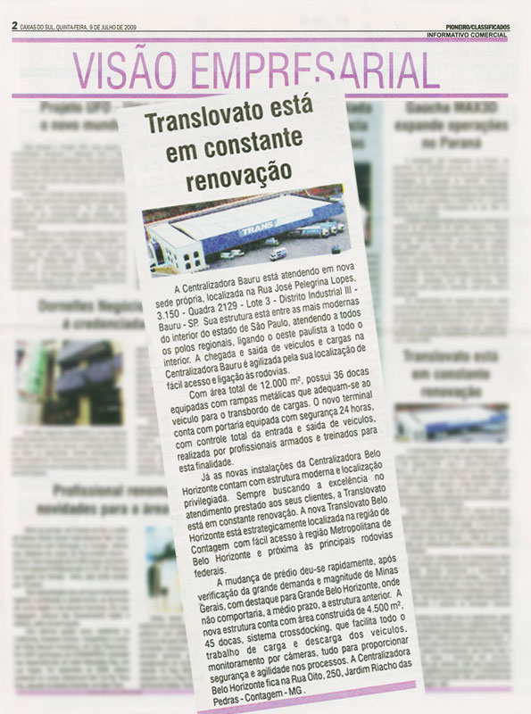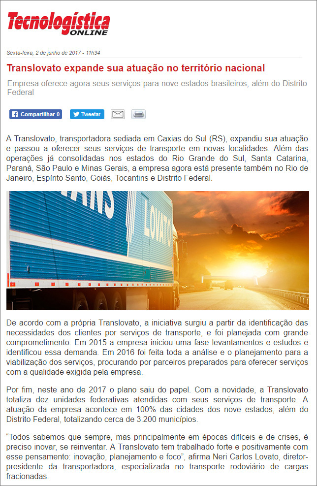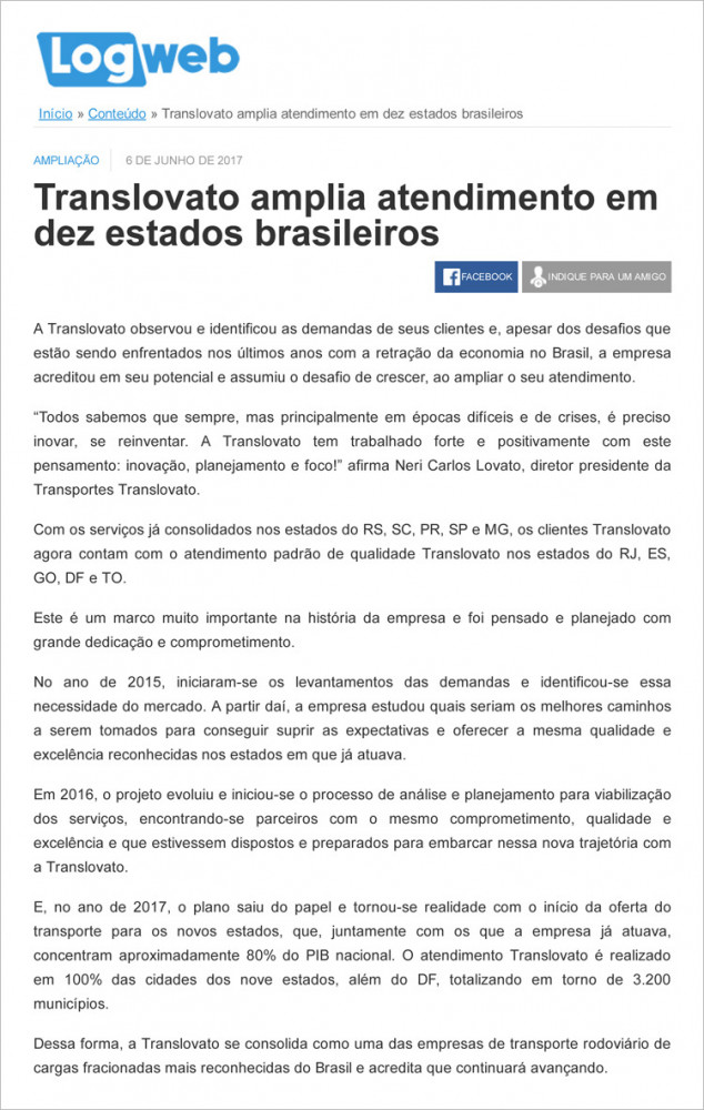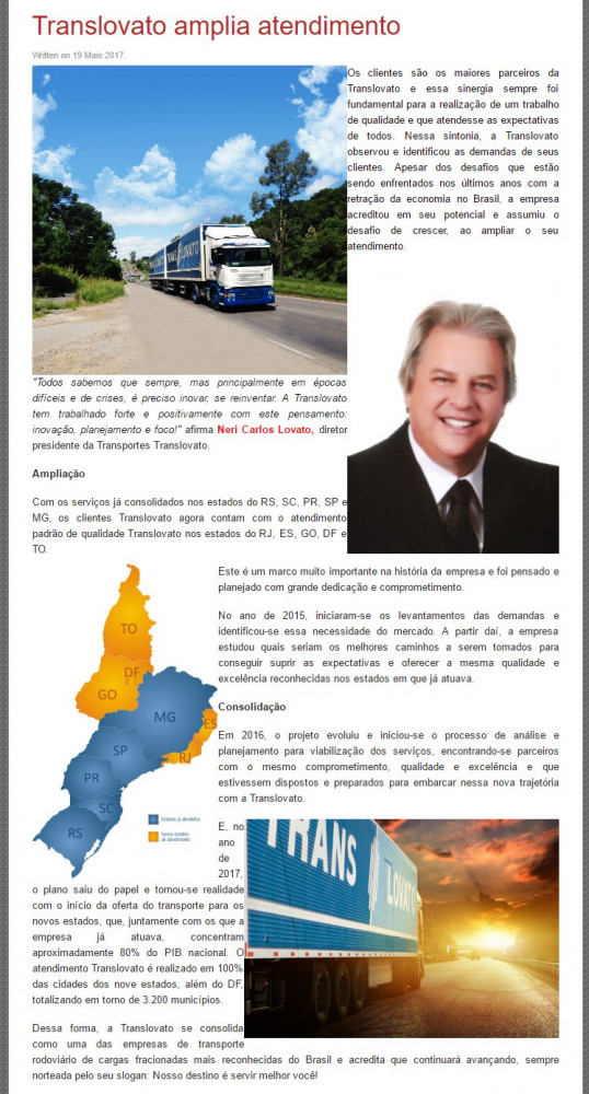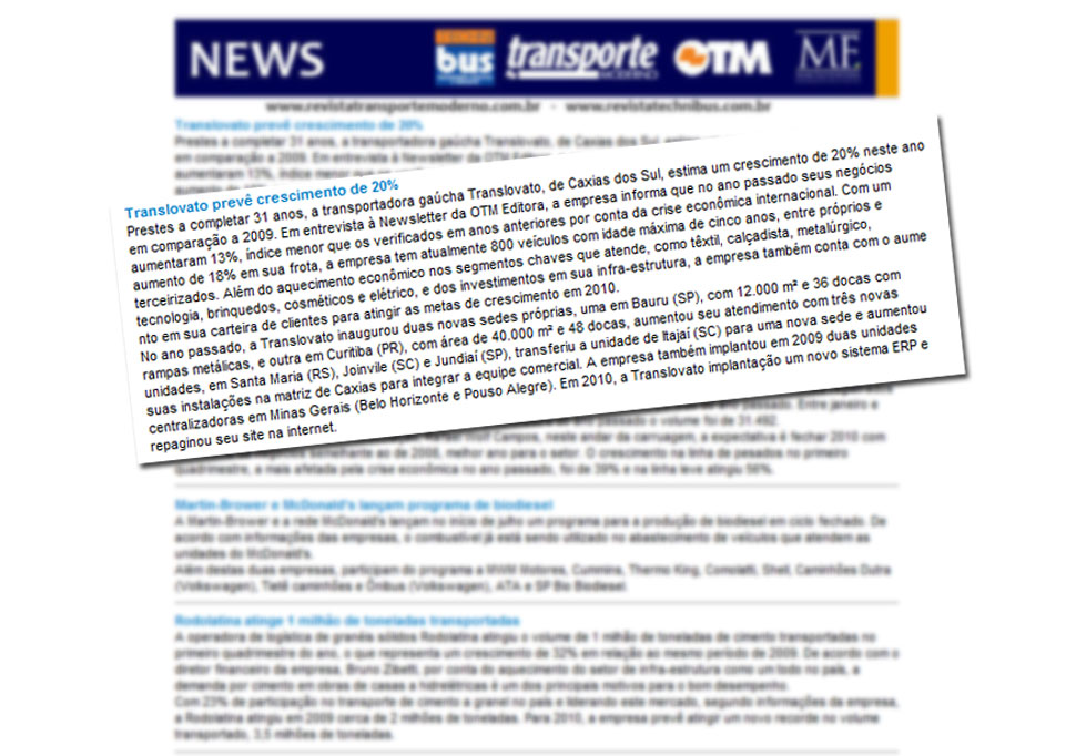 Confira as notícias sobre a Translovato que são destaque na mídia.